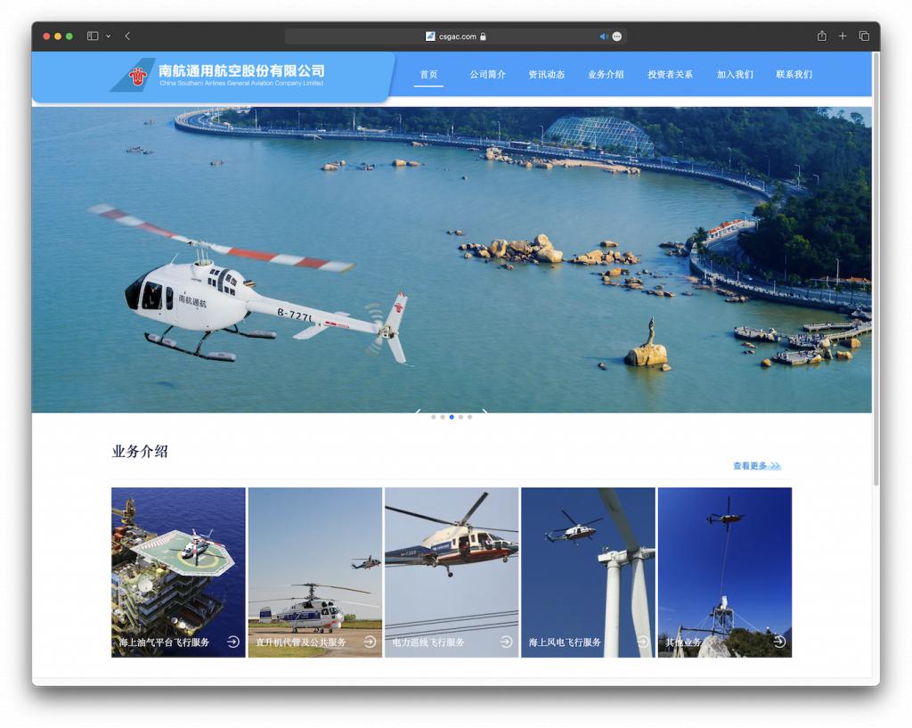 其实在「有人驾驶」时代,不少企业就已经探索过低空通航的市场了,比如隶属于中国南航集团的南航通航,就面向社会提供了多样化的直升机服务,比如面向海上油气平台的人员通勤班机、面向电力行业的飞行巡检。但从南航通航的网页来看,「城际短途飞行」的业务占比可以说微乎其微,即使是托管飞行服务,面向的也主要是广东海事局、内蒙古蒙泰集团等单位。