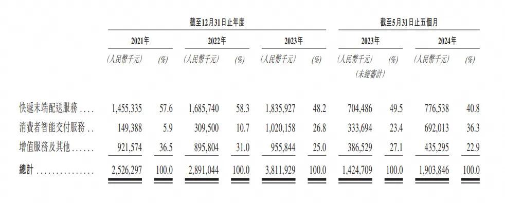 调整之后,快递末端配送服务部分由 2023 年 5 月 31 日止 5 个月的毛损率(销售成本为负数的情况,销售收入低于销售成本的时候出现毛利率为负值的情况)12.2% 转为 2024 年同期的毛利率 32.4%,整体毛利率则由 3.6% 升至 26.1%,盈利能力大幅提升。
