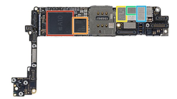 (iPhone 7 拆解后的集成电路,图自:Tcchnews)