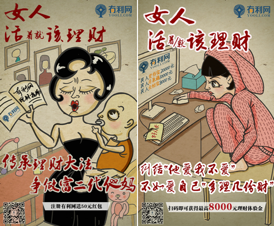 不同于一般企业做3.8营销,都是类似“女人很伟大”、“女人就该对自己好一点”、“妈妈辛苦了”等等鸡汤路线,有利网选择的是“负能量”的“女人活(着就)该理财”的主题。类似“传承理财大法,争做富二代他妈”、“纠结他爱我不爱,不如爱自己多理几份财”色调偏灰,但是却真实反映当今社会的现状和价值取向,这种对公关痛点的把握,自然能够激发受众的认同,远比满满一碗油腻的鸡汤要好得多。