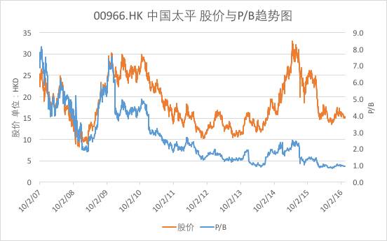 但是随后的几年,市场回归理性,保险公司的估值回归到应有的1-2倍P/B,股价也从来没有回到过2008年的水平。