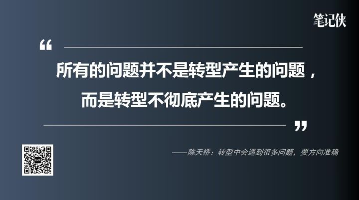 通过这些经验,我发现:虽然转型中会遇到很多问题,但只要方向准确,所有的问题并不是转型产生的问题,而是转型不彻底产生的问题。