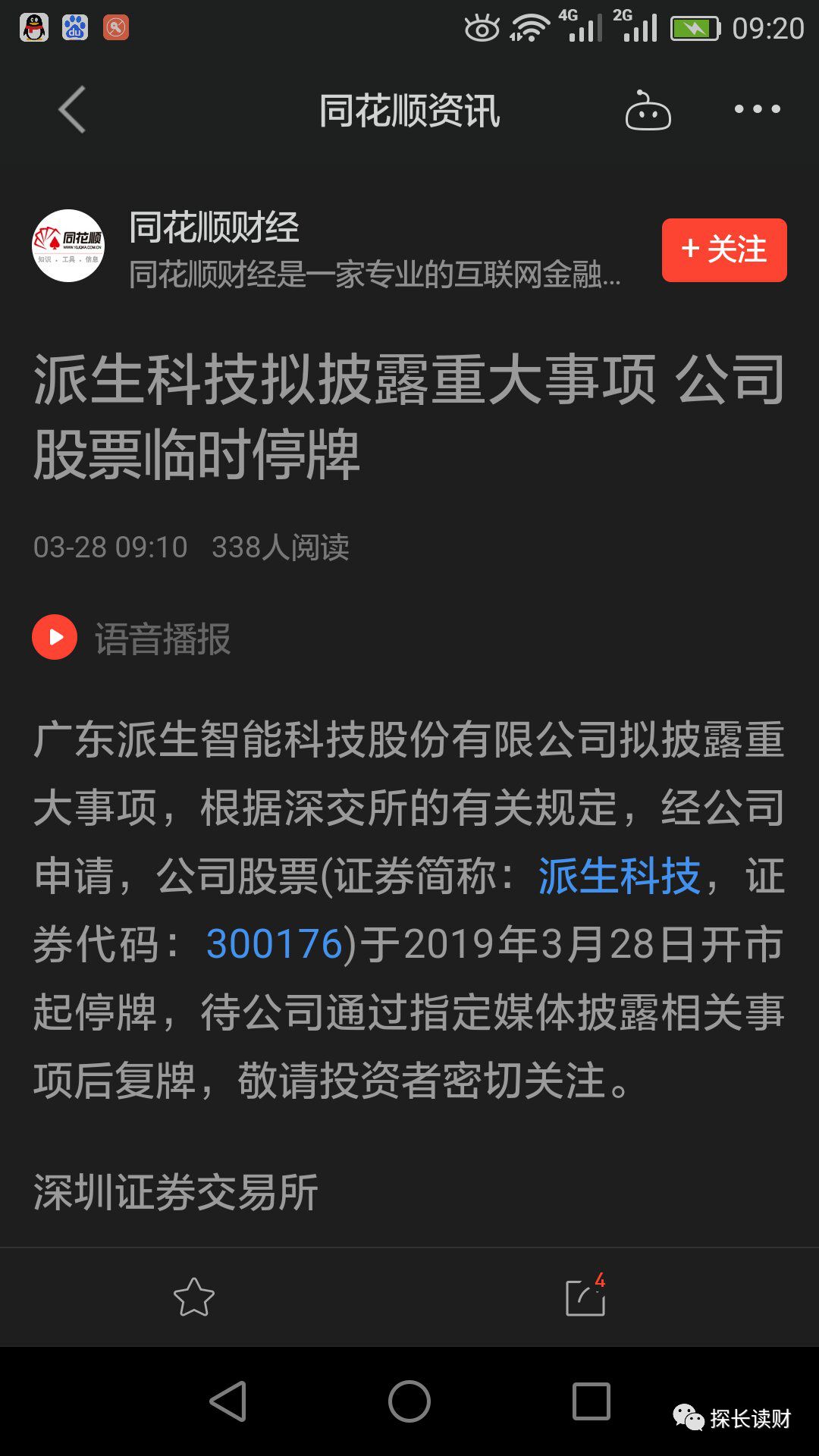 截至发稿前,派生科技分布公告称,派生科技实控人唐军(未在公司担任职务)、董事长兼总经理张林、董事余军、副总经理兼董事会秘书晋海曼,因涉嫌非法吸收公众存款被公安机关采取强制措施。目前,公司日常生产经营运作正常。因上述相关人员无法正常出席,特推迟举行2018年年度业绩网上说明会。公司股票自3月28日起停牌。