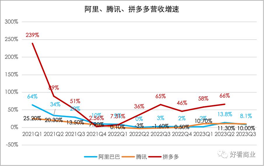 尤其是当追赶者仍在高速增长时,互联网双雄阿里、腾讯显著放缓的增速就更加扎心了。