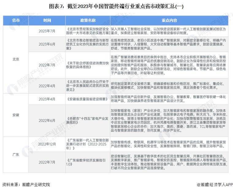 从地方层面政策来看,各省市提出智能终端推广应用及相关项目落地实施规划,加速推进地方智能终端产业快速提升。主要省市的发展目标汇总如下: