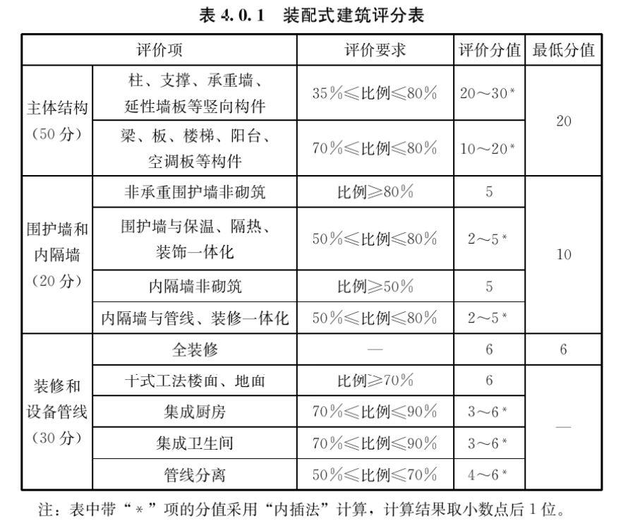 因为主体结构面临技术和成本两大难题,在全部 50 分的评分中往往仅能满足 20 分的最低要求。这也意味着,想要达到装配式建筑的最低分数线,内装至少需要贡献 30 分。