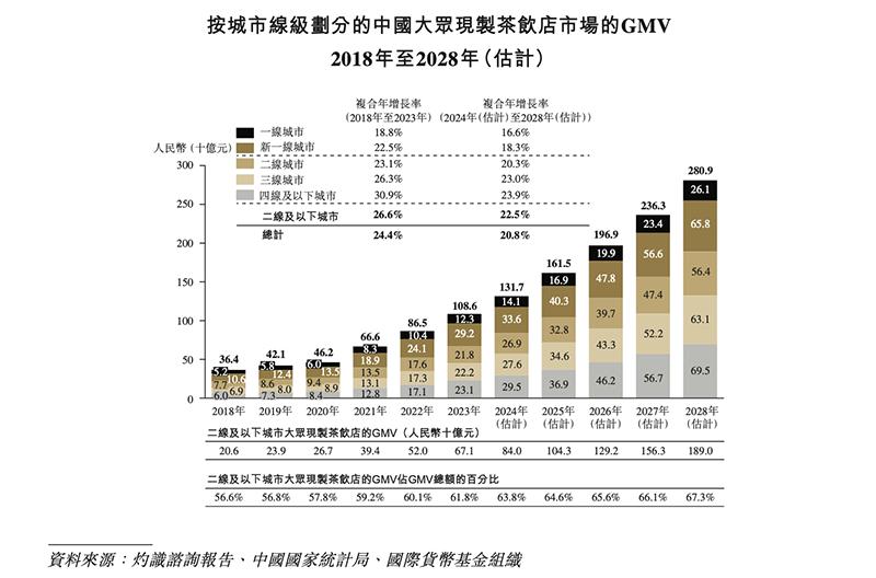 二线及以下城市和各县级城市的乡镇代表着庞大的尚未开发的市场。在该等城市中,按 2023 年的 GMV 计,古茗约占 22% 的市场份额。同期,古茗门店位于乡镇的比例为 38.3%,而国内其他前五大茶饮品牌的比例普遍低于 25%。截至 2024 年 9 月 30 日,古茗乡镇门店占比进一步增至 40%。