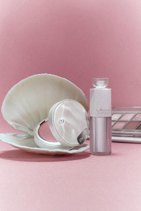 在包装上,「牡蛎之心」以光泽感白色与灰粉色彩交织,细腻的贝壳与珍珠图案跃然其上,每一次开合,都仿佛打开了一个璀璨的世界。在彩妆的配色设计方面,也是偏向银白、灰粉的珍珠系色彩,特别是高光与眼影的亮闪色,也是模拟珍珠的璀璨光泽。