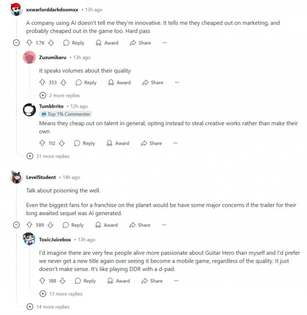 在其评论区中,大量玩家对此表示了强烈的不满。玩家认为知名的成熟的游戏公司不应该做出使用 AI 制作海报这样的事情。此外,因为这次 AI 海报涉及到经典 IP,对这些游戏具有情怀的老玩家感受到了强烈的被冒犯。