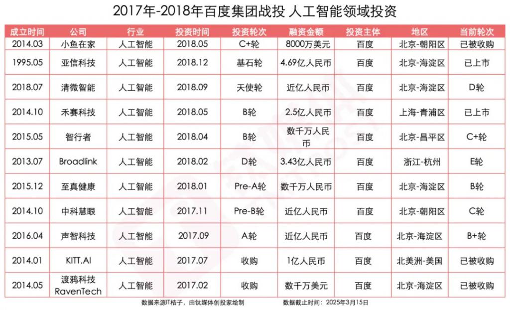 从资本市场的动作来看,百度的投资策略显得尤为审慎。