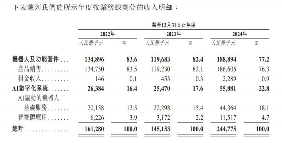 其中主要收入就是机器人产品的销售,这就包括上面提到的酒店和医院等场景下见到的整机机器人,主要代表为 " 润 " 系列和 " 格格 " 系列。这一部分收入占比超过 75%。而按照 2023 年的收入计算,云迹科技酒店场景的智能体市场排名全球第一。