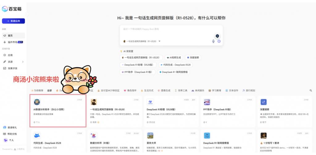 打开蚂蚁百宝箱,跳出一只商汤小浣熊。