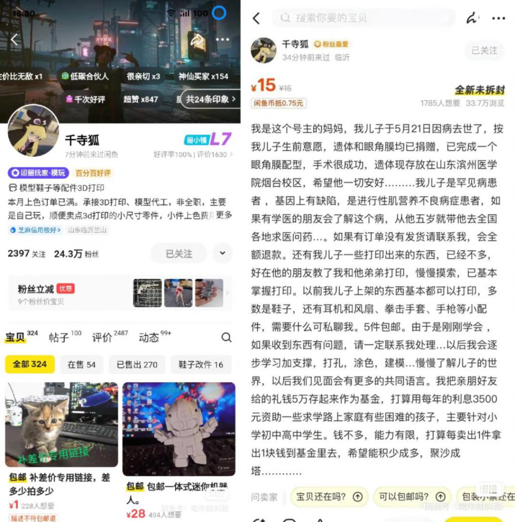 2 年后的今天,这家店铺依然在持续运营。母亲从零开始自学 3D 打印技术,继承了儿子的店铺,现在主页依然能看到不少网友在评论区祝福阿姨身体健康,夸产品质量 " 所见如所得 "。
