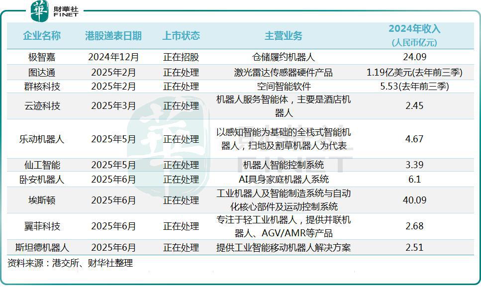 今年以来,机器人企业掀起轰轰烈烈的港股上市潮流,这些企业成为香港资本市场一道绚丽的光芒。根据财华社整理,今年上半年递表港交所的机器人相关企业多达 9 家,算上目前正在招股的极智嘉(02590.HK),合计有 10 家。