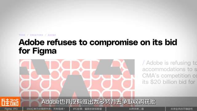 2022 年,Adobe 面临数字设计领域产品的口碑降低、专业用户流失等问题,尤其是 UI(用户界面)设计领域被 Figma 全面超越,所以 Adobe 就想直接把 Figma 给收了,来重建产品能力。