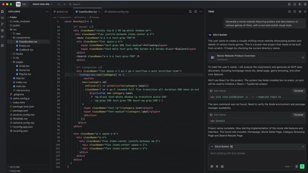 可以看到,比起以往只是辅助程序员写编码的 AI 助手,新版本的 Trae 们已经能让零基础编程的开发者用平台开发出一个完整的产品。