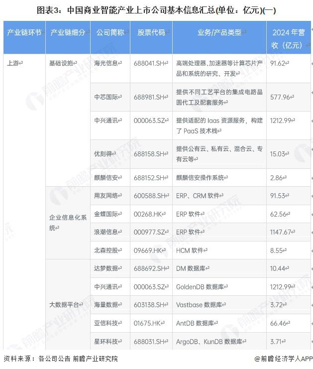1、商业智能行业上市公司汇总
