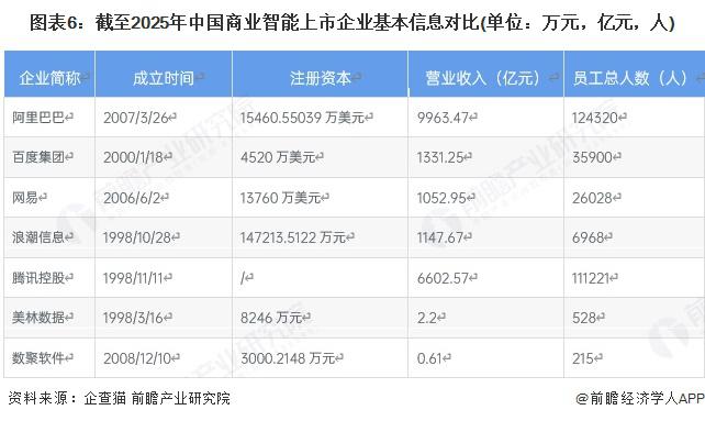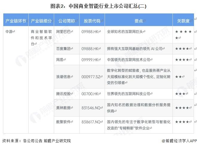目前,商业智能上市企业数量较少,代表性企业包括:百度集团、网易、浪潮信息,具体情况如下: