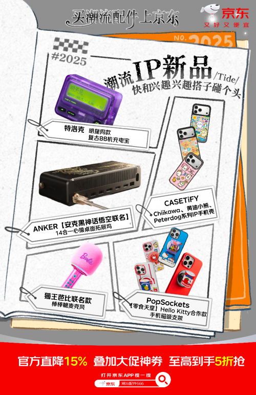 喜欢的不只是明星,更是他们同款的潮流态度,IP联名新品,让日常装备也充满个性与趣味。特洛克明星同款复古BB机充电宝,将经典潮流符号与实用功能合二为一,情怀满分。CASETiFY、Chiikawa、黄油小熊、Peterdog系列IP手机壳,让热门IP化身每日陪伴,彰显独特个性。猫王芭比联名款棒棒糖麦克风,甜美造型带来专业级K歌体验,可爱即是正义。PopSockets零食天堂Hello Kitty合作款磁吸支架,可爱零食主题设计,让手机站立也充满乐趣。ANKER安克黑神话悟空联名款14合一心猿桌面拓展坞,将传统文化与现代科技巧妙结合,丰富的接口满足多设备连接需求,让桌面更显整洁有序。