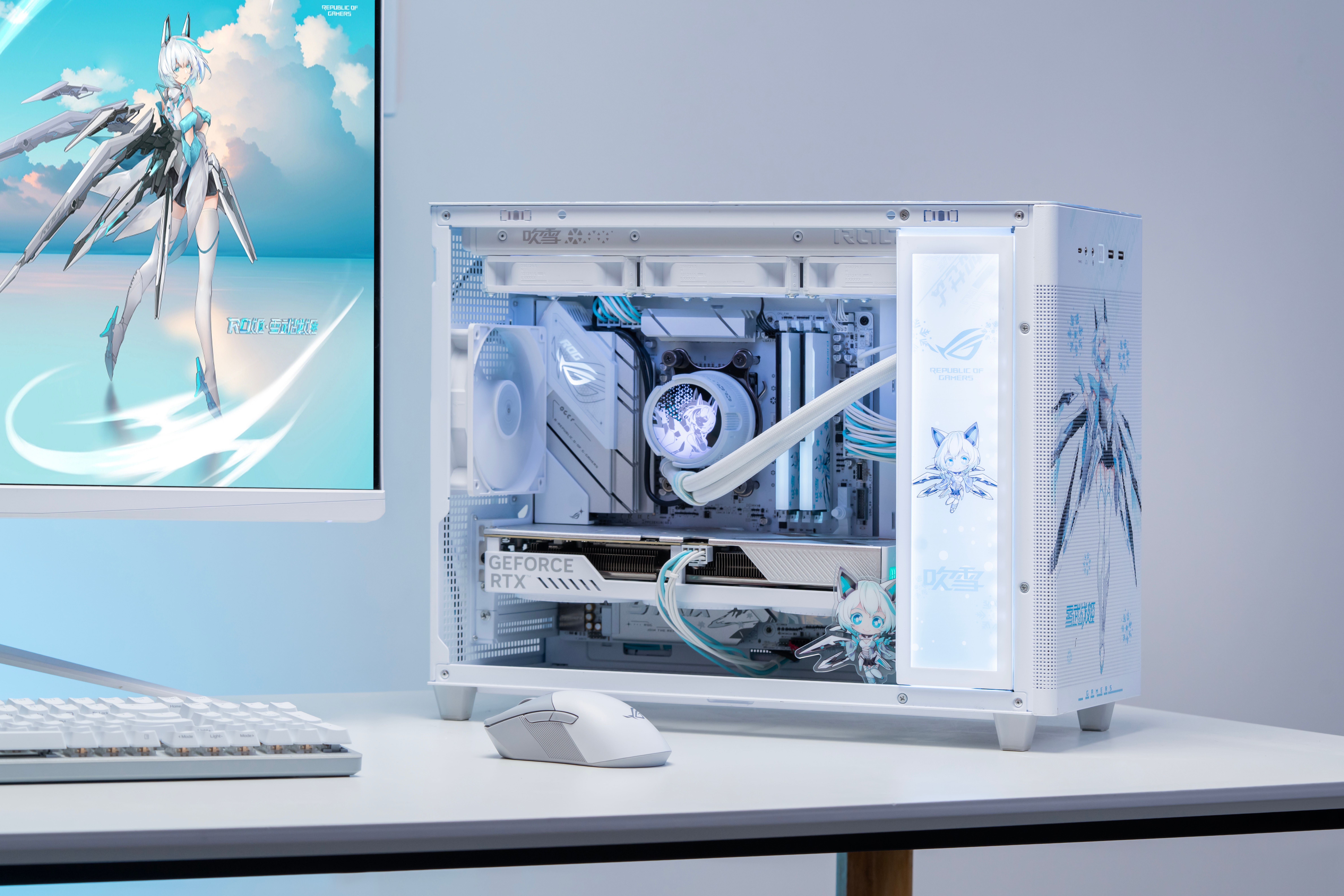 主板是整套主机的基石,十分重要。这里推荐的是吹雪家族新成员——华硕B850小吹雪主板。其以突破性设计重塑电竞美学,加入雪武战姬主题元素,银白装甲搭配白色内存插槽和浅色PCB,白的彻底。再配合上支持神光同步的ROG LOGO,构建次元美学新标杆!该主板单品限时直降150元,仅售1449元。