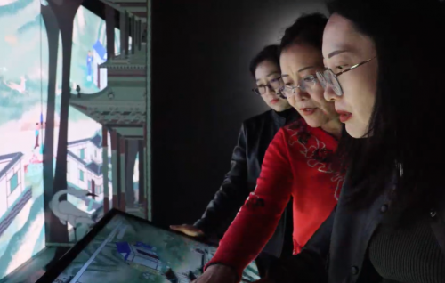 《灵境・未来灵感世界》以“古、今、未来”为脉络,通过“时空任意门”“心流万象”“纹韵华章”等10余个展项,构筑起清晰的观展动线。老师们循着动线穿梭于不同时空场景,直观感受到数字技术对艺术表达边界的拓展,仿佛置身于虚实交织的灵感世界。