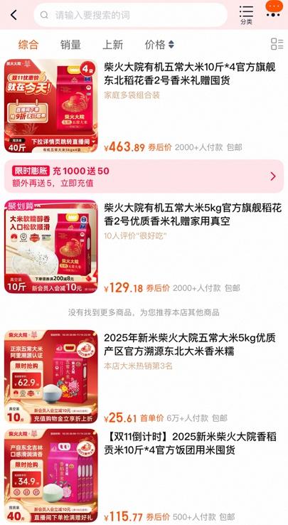 柴火大院高端有机大米价格最高可达 12 元 / 斤,来源:淘宝