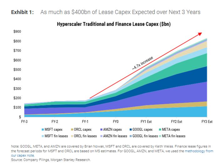 据追风交易台,摩根士丹利近期发布的一份题为《AI:租赁未来》(AI: Leasing The Future)的报告显示,一种类似债务融资的 " 融资租赁 " 模式,正在成为支撑 AI 基础设施扩张的关键力量。