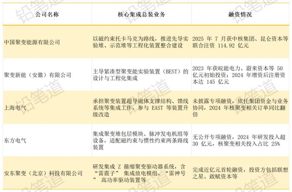 比如聚变新能主导的 BEST 装置,会采购西部超导的超导线材、安泰科技的偏滤器材料,再通过自身技术整合,建成能实现聚变反应的完整装置,是产业链的 " 核心枢纽 "。