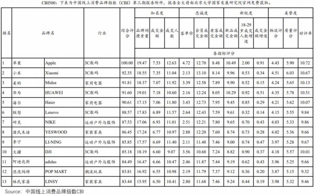 这个指数和榜单由北大国发院发布,淘天集团提供技术支持,基于 10 亿消费者的真实行为,对品牌进行销量、价格、搜索、口碑等多维度的 " 打分 "。