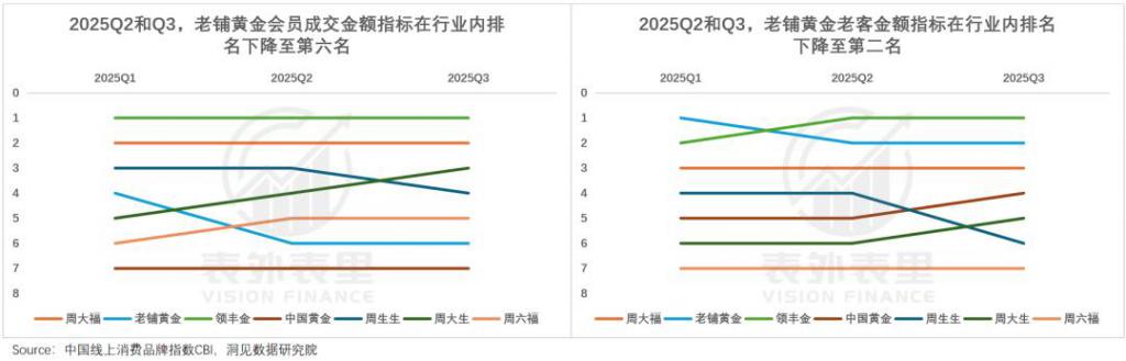 从最新 CBI 指数看,其 " 老客金额 " 指标的行业排名,下降至第二;" 会员成交金额 " 指标的行业排名,下降至第六。
