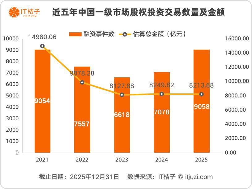 2025 年,中国新经济一级市场共发生 9058 起投资交易,比 2024 年的 7078 起增加了 1980 起,增幅高达 28%。