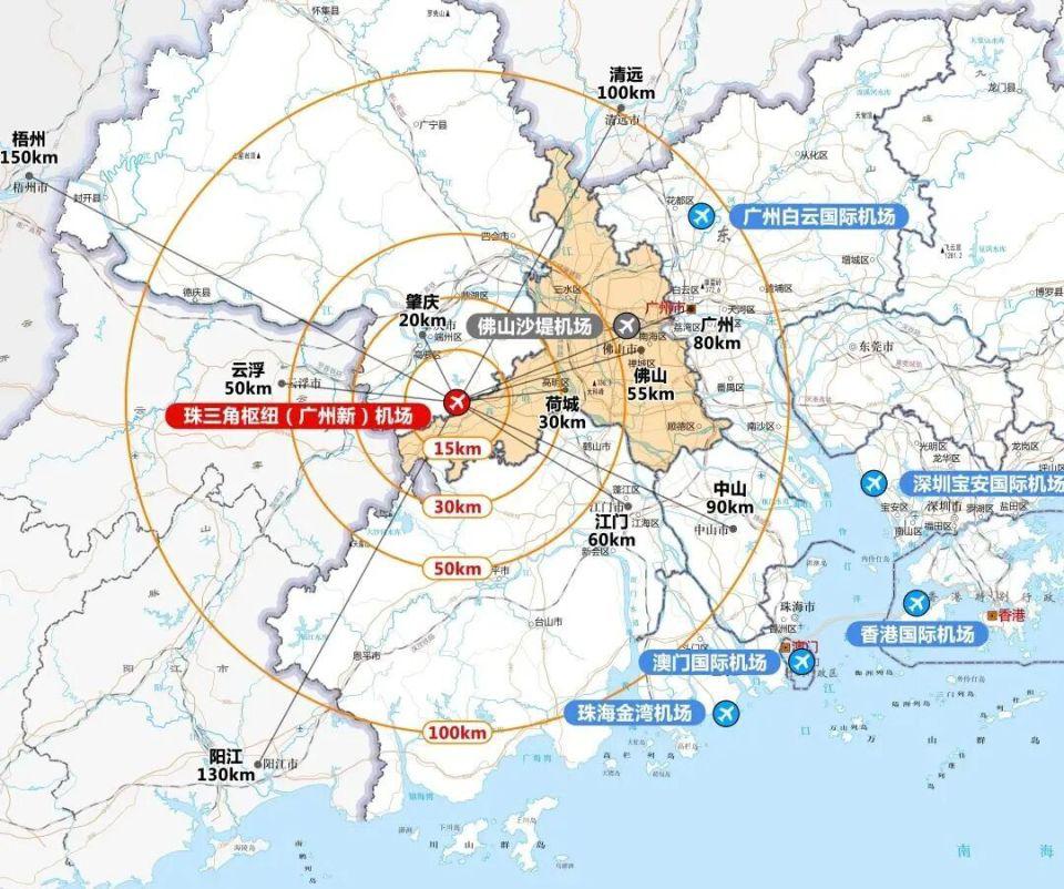 虽以 " 广州新机场 " 为名,但机场坐落于都市圈的佛山市高明区,客流量一般不会计入广州。