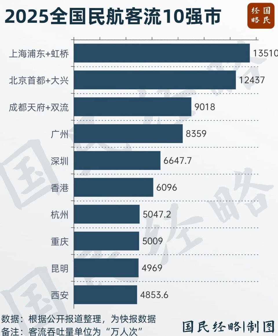 " 流量经济 " 时代,谁是全国 10 大机场?谁又是 10 大机场城市?