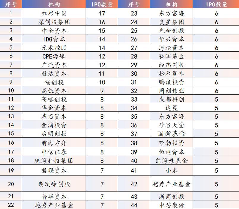 2025 年 IPO 成绩单:红杉、深 、中金资本分列前三名