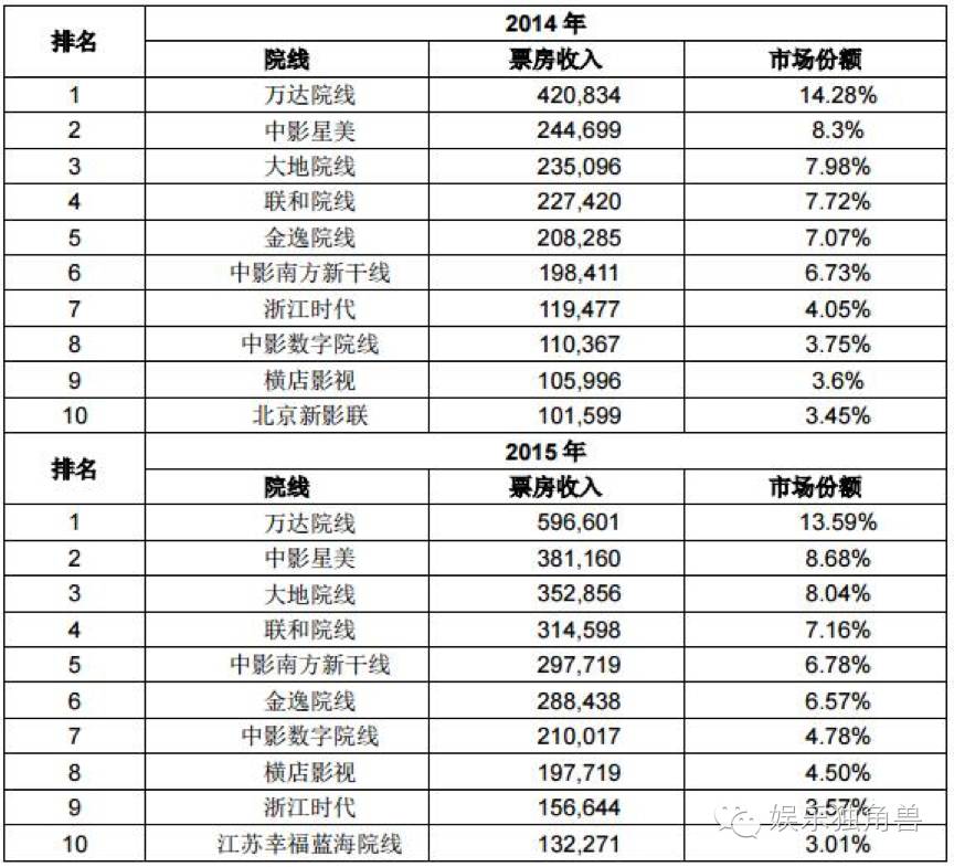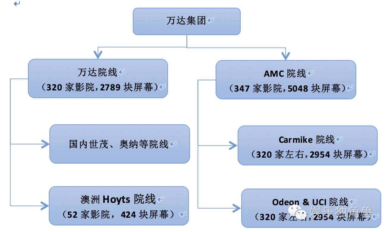 在此次并购之前,万达院线通过在国内的建设和收购,成为中国国内第一大院线,2015年市场份额达到13.59%,稳居全国第一。万达年报显示,截止2015年底,万达在国内拥有影院 240家,2133块银幕。