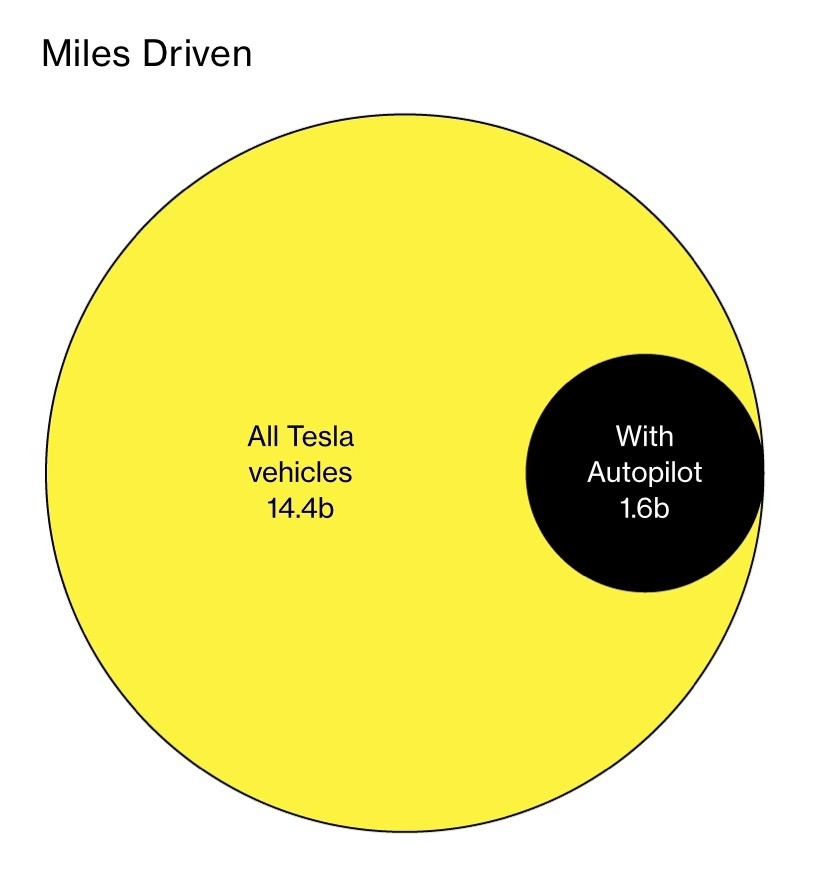 图示:特斯拉 行驶里程以及Autopilot行驶里程(英里)数据统计
