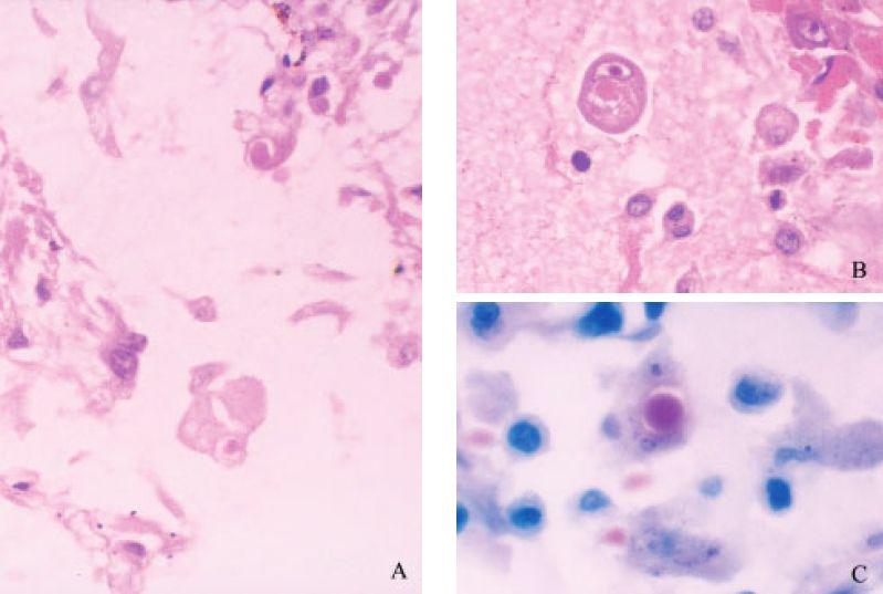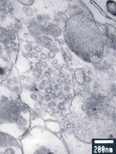 SARS 死者肺内显微镜下检见病毒包涵体 | 参考文献 [ 7 ]
