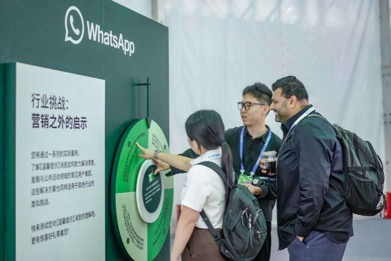 WhatsApp Business在前沿应用馆的3-16B展位吸引了众多与会者到访