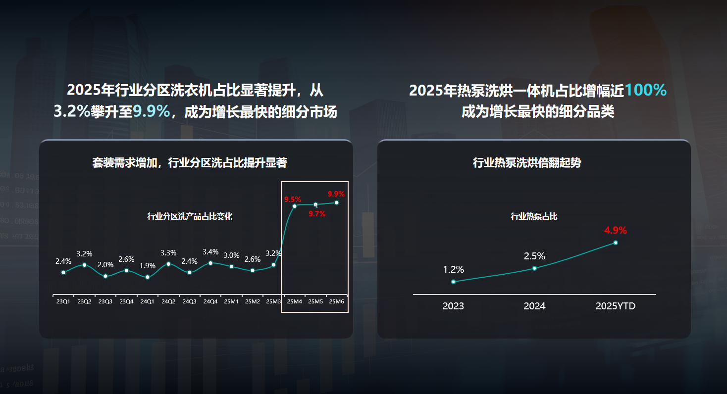 当下家庭洗护需求正呈现精细化、健康化的发展趋势。现代家庭面临着一系列洗衣痛点:婴幼儿衣物需要独立清洗避免交叉感染,高端面料需要专业护理,不同颜色衣物需分洗防止串色。然而,居住空间的限制又让多数家庭难以容纳多台洗衣机。这种“既要又要”的需求矛盾,成为行业创新突破的关键切入点。市场数据显示,多筒洗衣机市场渗透率在短时间内实现数倍增长,热泵洗烘一体机销量近乎翻番。这些数据背后,反映的是当代消费者对健康洗护的迫切需求,以及对家居空间利用效率的极致追求。
