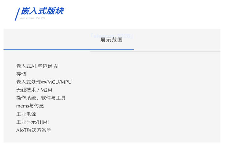elexcon2026,筛选了500+拥有成熟方案、技术以及强大供应链的优质展商;聚集了3W+工程师以及有预算和项目的采购与管理者;百万线上资源同频共振,从元器件到系统,从芯片到云端,一站打通AI、 、工业、机器人、AIoT全链路选型需求。