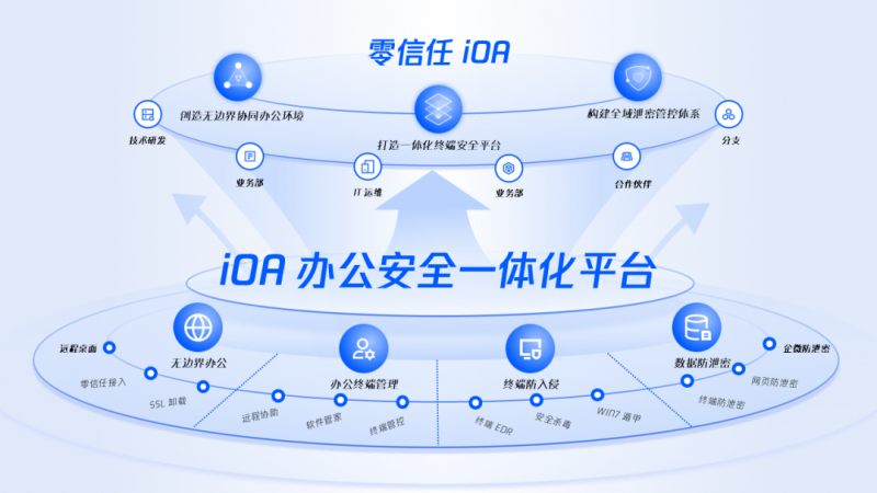 目前,腾讯iOA经过不断迭代,已集成零信任接入、杀毒、桌管、终端检测与响应EDR、终端防泄密DLP、软件管家、远程桌面等多重能力,实现了All in one产品设计和一体化安全管控。