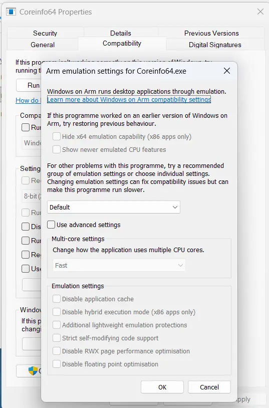 如果系统更新后该功能未自动启用,用户可以手动开启。具体操作为:右键点击目标程序(.exe 文件),选择“属性”,切换到“兼容性”选项卡,在 Windows Arm 兼容性菜单中,勾选“显示较新的模拟 CPU 功能”即可。如果显示的是“隐藏较新的模拟 CPU 功能”,则代表该功能已默认启用。
