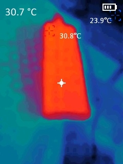 使用热成像仪测温,可以看到朗科WH51运行时表面温度最高为30.8℃,拆开外壳,朗科 NV3000 2T表面最高温度也仅为40.8℃。温度控制还是挺不错的。
