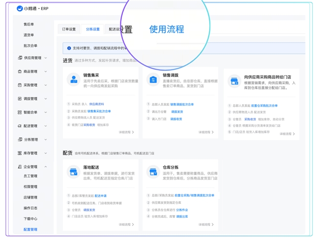 ● 更新ERP流程的配置化,将ERP中多个流程细分为单个流程,并通过控制项的开关来判断是否需要跳过某一流程,方便商家朋友们更加灵活设置每个节点的权限。