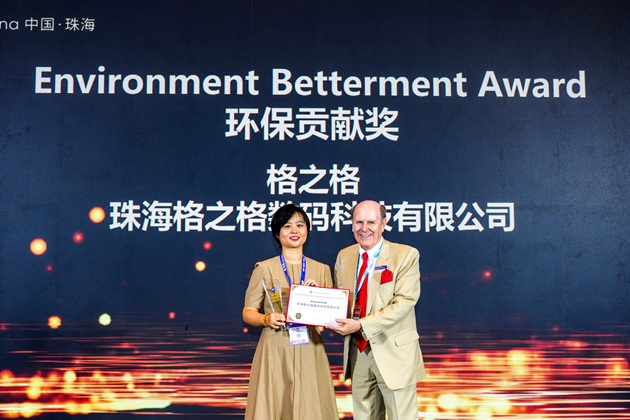 备受瞩目的2025全球打印耗材行业大奖颁奖典礼也如期举行,为全球打印耗材行业作出杰出贡献的企业或个人颁发荣誉。格之格凭借在生产研发、环保创新技术、空旧耗材回收、绿色公益等方面作出的可持续发展贡献,荣获“环保贡献奖”;格之格海外品牌G&G荣获“打印耗材国际品牌奖”。