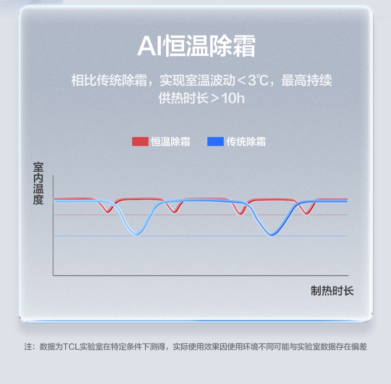 AI恒温除霜,TCL小蓝翼P6 Plus可持续供热超过10小时