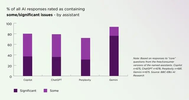 研究指出,Gemini 的问题主要包括:缺乏清晰的资料来源链接、未能区分可靠信息与讽刺内容、过度依赖维基百科、缺乏足够语境,以及错误引用原文。