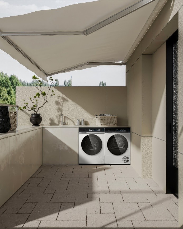 在厨房场景中,「月影白」系列烟机采用顶侧双吸结构,旨在从源头改善油烟逃逸问题;「月影白」系列蒸烤一体机则融合了微蒸烤炸炖煮六种烹饪模式,并配备智能菜谱,以应对多元化的烹饪需求;「月影白」系列冰箱搭载智能eNose超氧锁鲜功能,有效延长食物保鲜时长。「月影白」系列嵌入式饮水机,温度可以一度一调,在即将到来的秋冬季,无论是润燥养生,还是新晋母婴家庭里面的奶粉冲泡环节,都能够即刻满足消费者的饮水需求。虽然本次套系里面并没有配套的完整洗碗机上市,但单独开发了同款月影白洗碗机玻璃面板,可全线搭载可定制门板的机型,消费者可根据自身需求搭配不同功能配置的洗碗机,确保厨房美学的协调一致。在洗涤护理场景中,「月影白」系列洗烘套装的蒸气除皱和超氧空气洗功能,在呵护织物的同时,也让消费者在日常生活中更加省时省力。