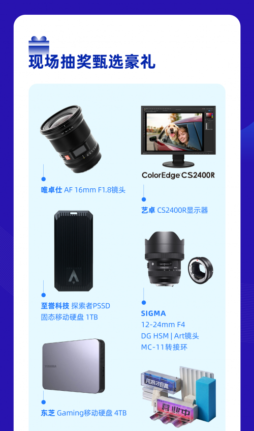 恰逢索尼微单15周年,现场设立产品体验区,摄影师可以在现场体验到A7R5等相机和今年新出的F2超三元和百微镜头,机会难得,欢迎各位莅临品鉴交流!