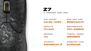 设计层面,前行者亦持续探索材质与情绪的关联。MUSE98从粉底液触感中汲取灵感,采用哑光磨砂外壳与多层Gasket结构带来温润细腻的按压反馈,其中内置10000mAh电池,轻松支撑多设备移动办公场景。电竞系列鼠标产品线同样亮点频出:Z7型号搭载Nordic 54L15主控芯片与原相PAW3950光学传感器,配合欧姆龙一亿次光学微动,实现像素级追踪精度,碳纤维外壳结合进口疏油涂层,不仅轻盈耐磨,单次充电续航更高达600小时。
